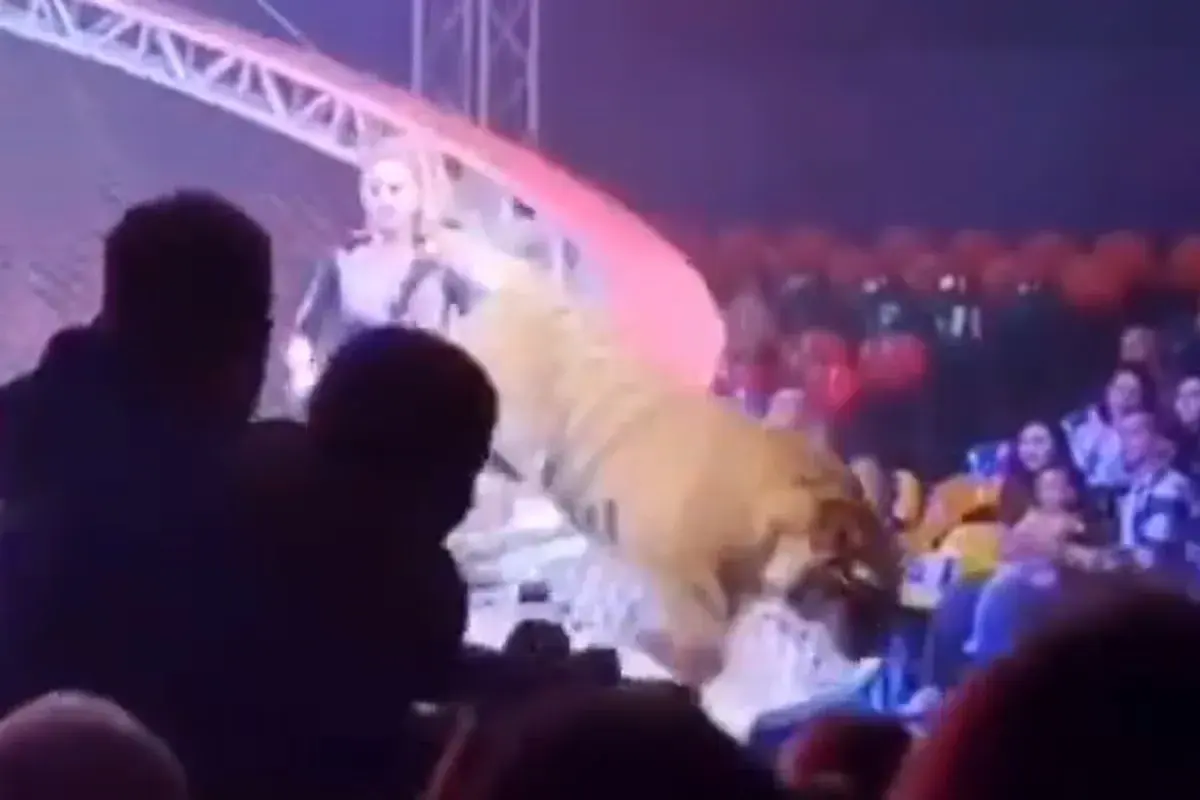 การไปชมคณะละครสัตว์ กลายเป็นเหตุการณ์ตื่นตระหนก เมื่อเสือตัวหนึ่งที่กำลังแสดงได้กระโจนเข้าไปในฝูงชน ภายในเต็นท์ใหญ่ของคณะละครสัตว์ ที่เมืองรอสตอฟออนดอน ในประเทศรัสเซีย