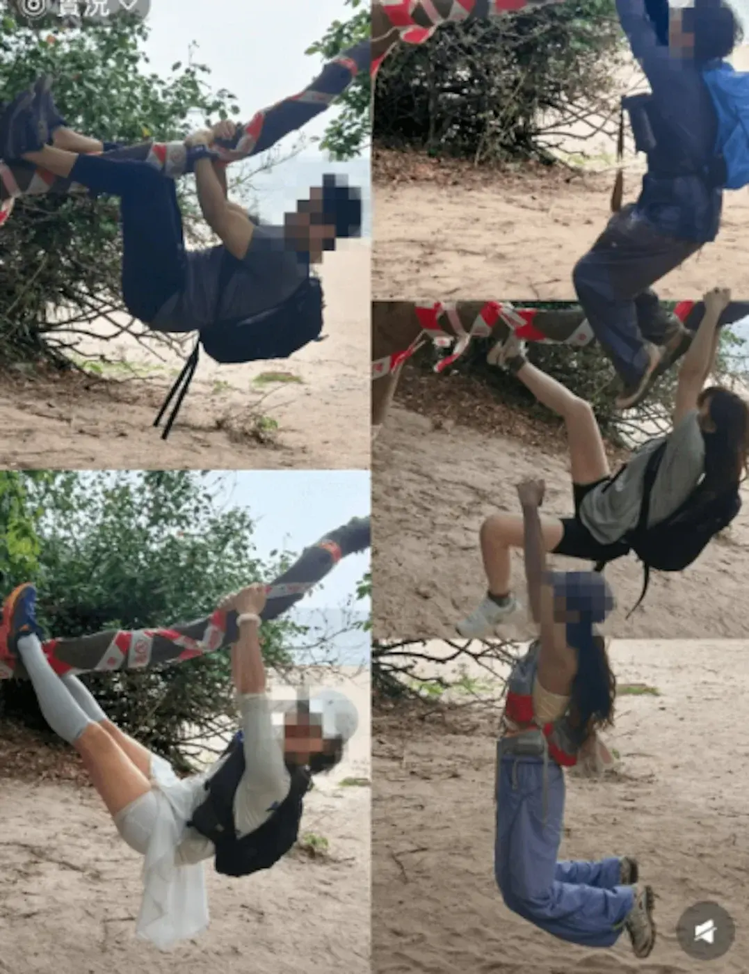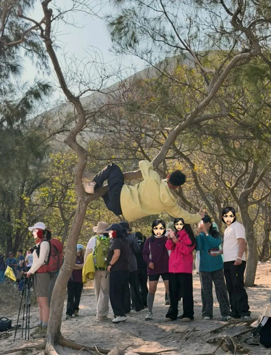 รายงานของ HK01 เมื่อวันที่ 24 เมษายน 2026 ระบุว่า กระแสนี้เกี่ยวข้องกับการถ่ายรูปตามมุมธรรมชาติในฮ่องกง โดยมีภาพนักท่องเที่ยวปีน กอด ห้อยตัว หรือนั่งบนกิ่งไม้เพื่อโพสต์ท่า บางจุดมีต้นไม้เริ่มเอียง รากโผล่ และกิ่งไม้ถูกกดจนผิดรูป โดยเฉพาะบริเวณอ่าวลองเก ซึ่งเป็นพื้นที่ธรรมชาติที่มีคนเดินทางไปมากขึ้นในช่วงหลัง