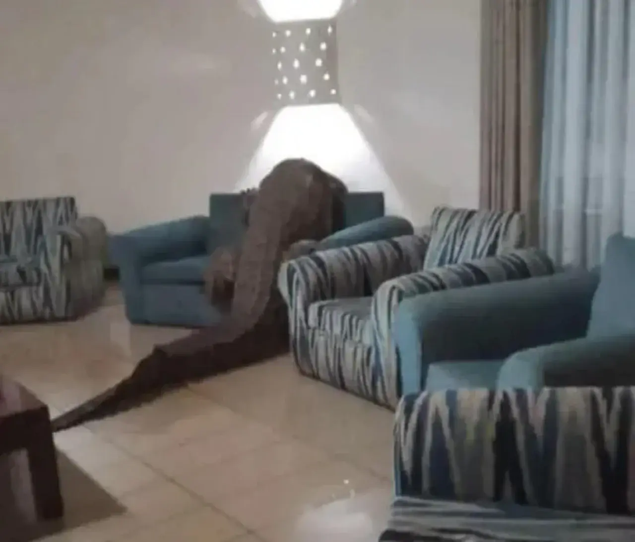 ยามเช้าตรู่ของเมืองวิคตอเรียฟอลส์ ประเทศซิมบับเว ซึ่งปกติเป็นช่วงเวลาที่โรงแรมยังเงียบสงบ แขกส่วนใหญ่ยังไม่ตื่น และพนักงานบางส่วนเพิ่งเริ่มเตรียมความพร้อมสำหรับวันใหม่ กลับกลายเป็นเช้าที่ไม่มีใครในโรงแรมจะลืมได้ง่าย ๆ เมื่อแขกไม่ได้รับเชิญขนาดมหึมาเลื้อยเข้ามาถึงโซนห้องครัวของโรงแรมอย่างไม่คาดคิด