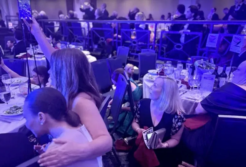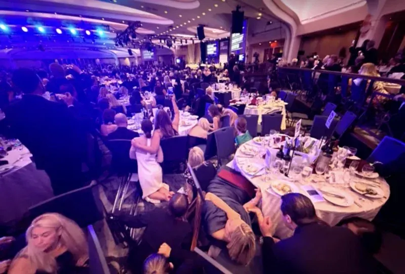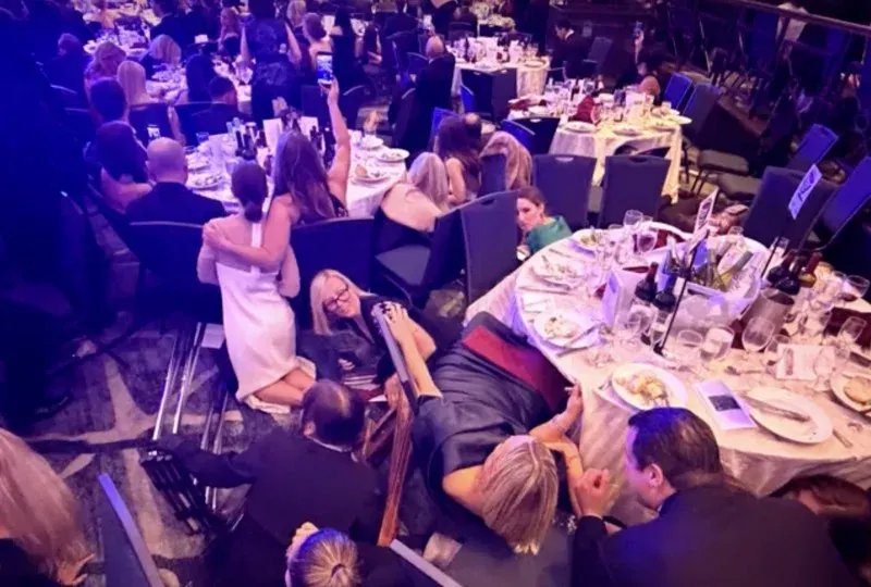 เวลาประมาณ 20:36 น. ท่ามกลางแขกผู้ทรงอิทธิพลกว่า 2,600 คน เสียงปืน 5–8 นัดดังลั่นบริเวณจุดตรวจความปลอดภัยด้านนอกห้องจัดเลี้ยงหลัก สร้างความโกลาหลในเสี้ยววินาที เสียงตะโกน “Get down!” ดังก้อง ขณะที่แขกจำนวนมากรีบหมอบลงใต้โต๊ะเพื่อเอาชีวิตรอด ภาพของค่ำคืนหรูหรากลายเป็นฉากเอาชีวิตรอดอย่างฉับพลัน