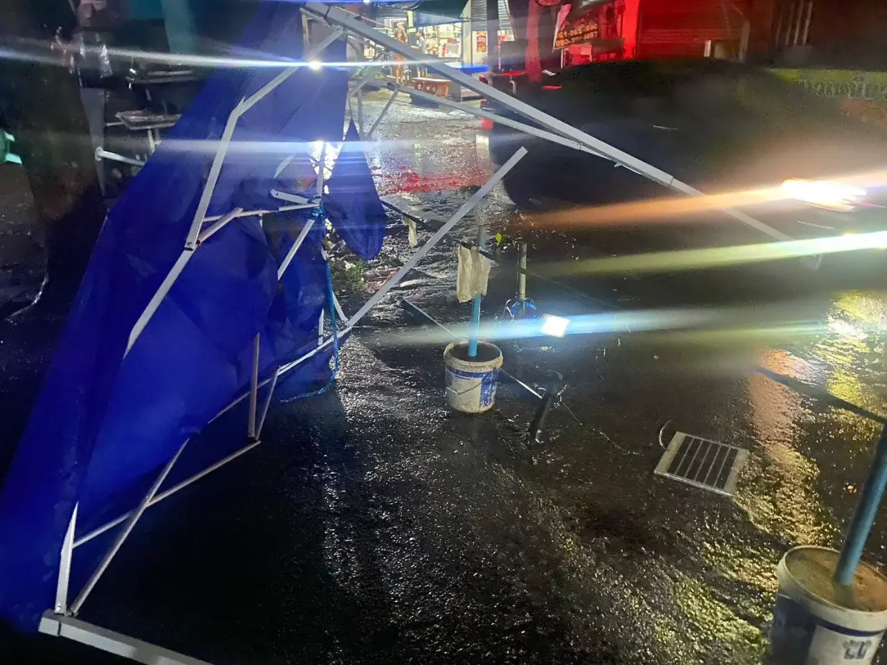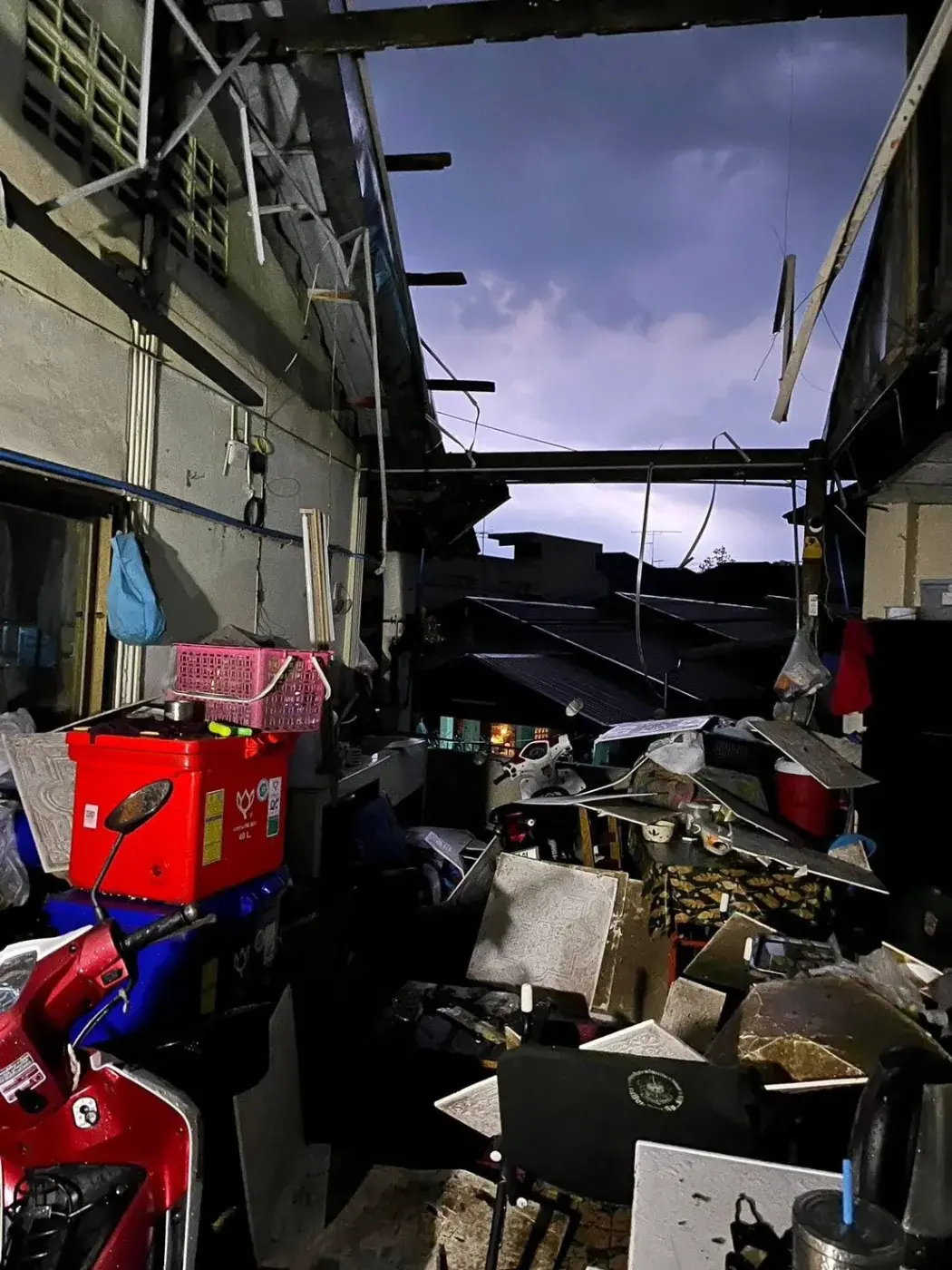 พายุฤดูร้อนถล่มแม่สาย ลมแรงทำบ้านเรือนเสียหาย เสาไฟล้ม-ไฟดับบางพื้นที่