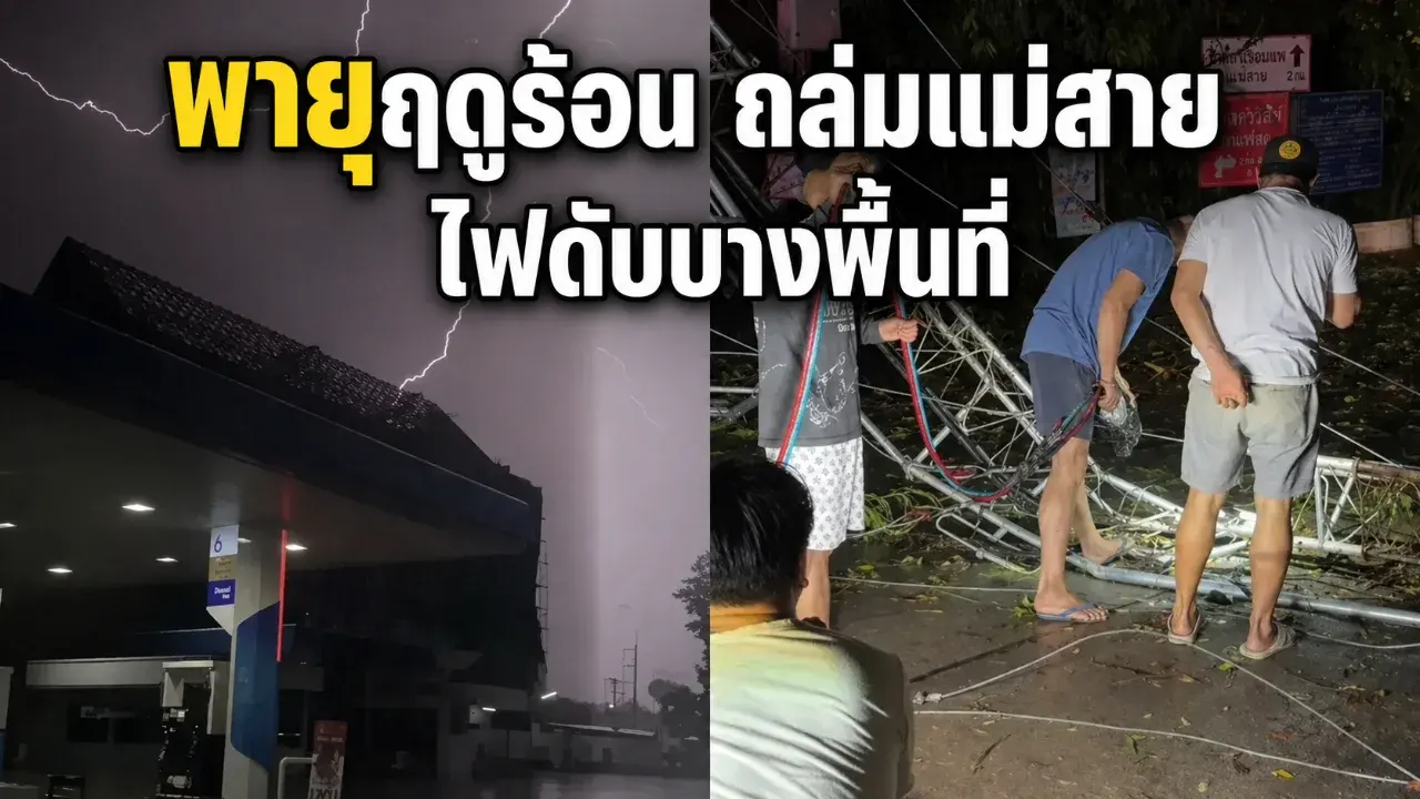 ช่วงค่ำวันที่ 27 เมษายน 2569 พื้นที่อำเภอแม่สาย จังหวัดเชียงราย เผชิญพายุฤดูร้อนและลมกระโชกแรง ส่งผลให้หลายจุดได้รับผลกระทบ ทั้งกิ่งไม้หัก ต้นไม้ล้ม สิ่งปลูกสร้างบางส่วนเสียหาย และมีรายงานไฟฟ้าดับในบางพื้นที่