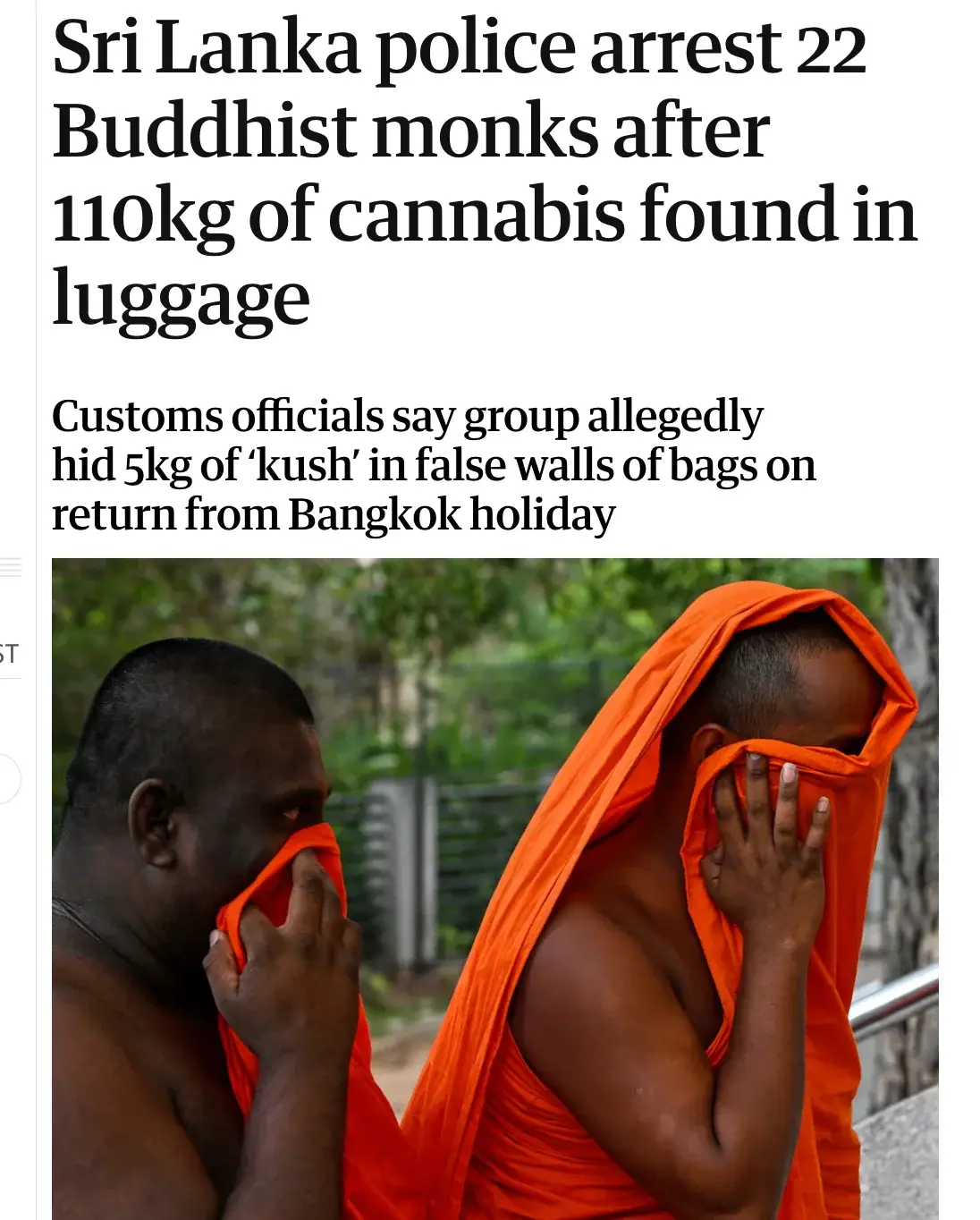 พระสงฆ์ 22 รูปถูกจับที่ศรีลังกา หลังพบกัญชา 110 กิโลในกระเป๋า