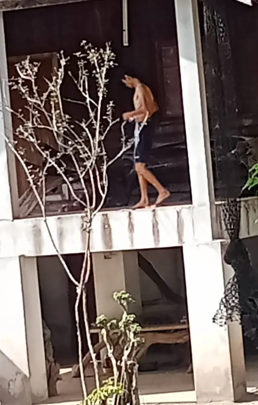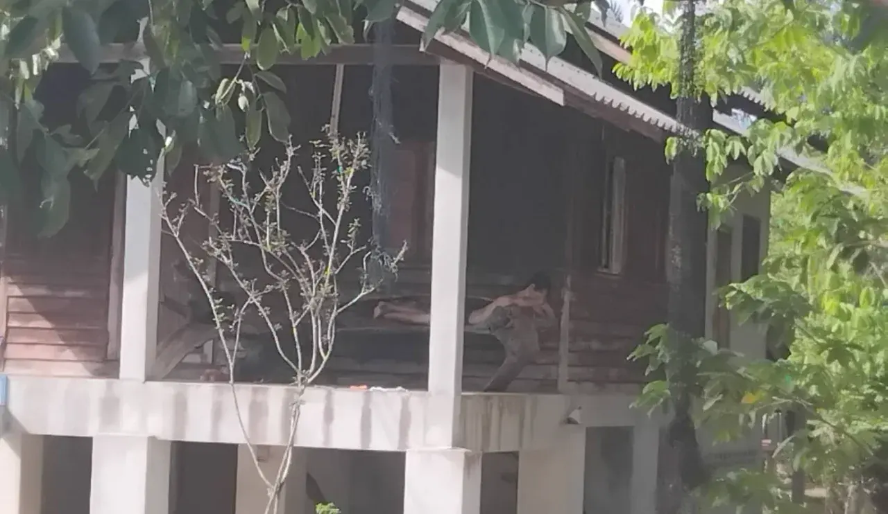 เมื่อถึงที่เกิดเหตุพบชาวบ้านจำนวนมากมุงดูเหตุการณ์ที่หน้าบ้าน 2 ชั้น ครึ่งปูนครึ่งไม้ ตรวจสอบบนตัวบ้านชั้น 2 พบคนคลุ้มคลั่งชื่อนายทวีศักดิ์ อายุ 35 ปี ชาวจังหวัดหนองบัวลำพูน อยู่ในสภาพเดินไปเดินมา ไม่สวมเสื้อและนุ่งกางเกงขาสั้นตัวเดียว