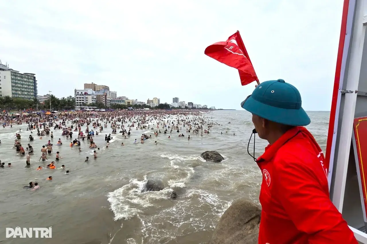 เจ้าหน้าที่กู้ภัยถูกจัดกำลังประจำตามแนวชายหาด เพื่อเตือนนักท่องเที่ยวไม่ให้ลงเล่นน้ำ ในบริเวณที่อันตราย