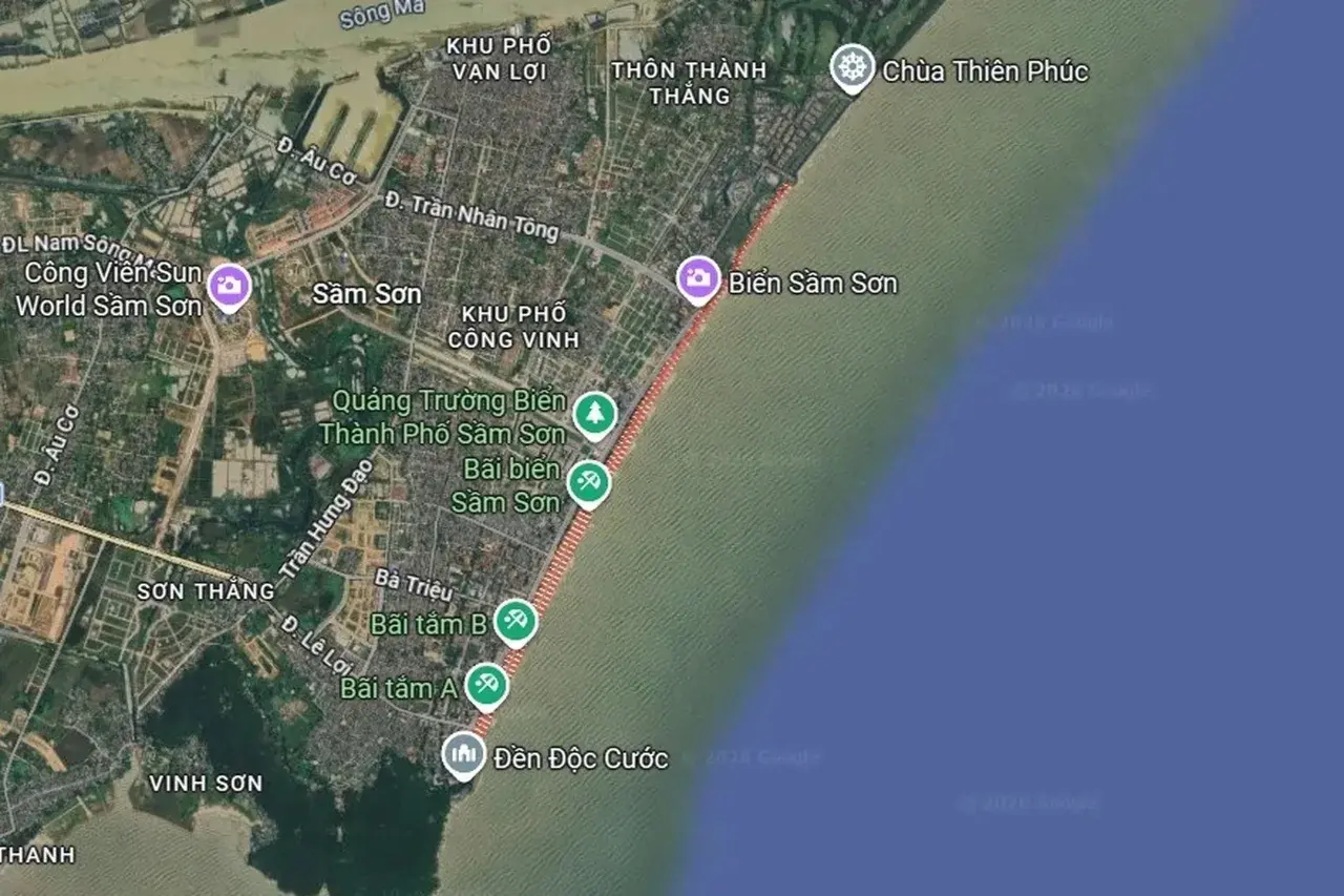 ช่วงบ่ายวันที่ 30 เมษายน 2026 นักท่องเที่ยวหลายหมื่นคนแห่ลงเล่นน้ำทะเลตามชายหาด A, B, C และ D ในเขตซัมเซิน จังหวัดทัญฮวา ประเทศเวียดนาม