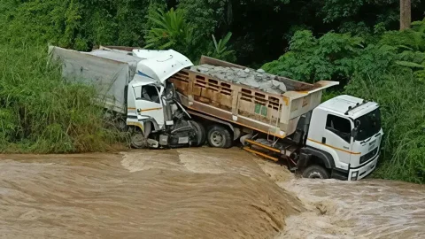 สิบล้อไถลชนท้ายริมคลองกลายดับคาที่ซากรถ 1 เจ็บสาหัสอีก 1