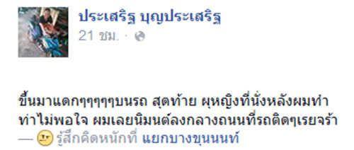 ขึ้นมาแดกๆๆๆๆๆบนรถ สุดท้าย ผุหญิงที่นั่งหลังผมทำท่าไม่พอใจ ผมเลยนิมนต์ลงกลางถนนที่รถติดๆเรยจร้า