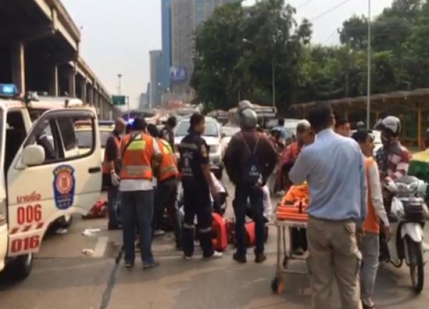สลด!! ตร.ขี่มอเตอร์ไซด์โดนรถเฉียวล้ม...เคราะห์ร้ายรถตามมาเหยียบซ้ำดับ