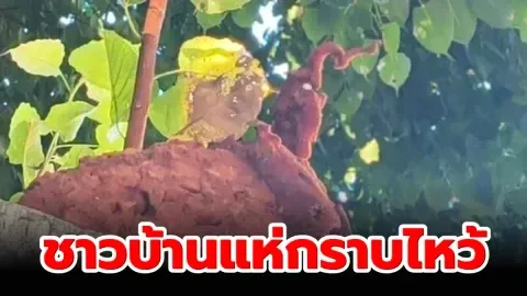 ชาวบ้านแห่กราบไหว้ หลังพบเนื้อไม้ประหลาดเป็นรูปพญานาค ขึ้นที่โคนต้นโพธิ์
