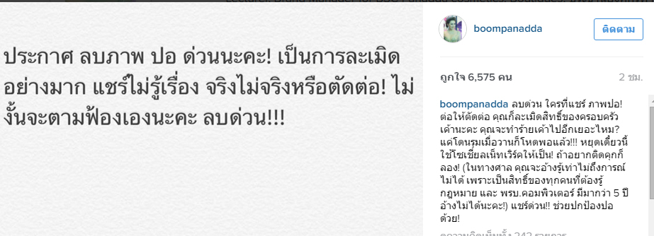 boompanadda ลบด่วน ใครที่แชร์ ภาพปอ! ต่อให้ตัดต่อ คุณก็ละเมิดสิทธิ์ของครอบครัวเค้านะคะ คุณจะทำร้ายเค้าไปอีกเยอะไหม? แค่โดนรุมเมื่อวานก็โหดพอแล้ว!!! หยุดเดี๋ยวนี้ ใช้โซเชี่ยลเน็ทเวิร์คให้เป็น! ถ้าอยากติดคุกก็ลอง! (ในทางศาล คุณจะอ้างรู้เท่าไม่ถึงการณ์ไม่ได้ เพราะเป็นสิทธิ์ของทุกคนที่ต้องรู้กฎหมาย และ พรบ.คอมพิวเตอร์ มีมากว่า 5 ปี อ้างไม่ได้นะคะ!) แชร์ด่วน!! ช่วยปกป้องปอด้วย!