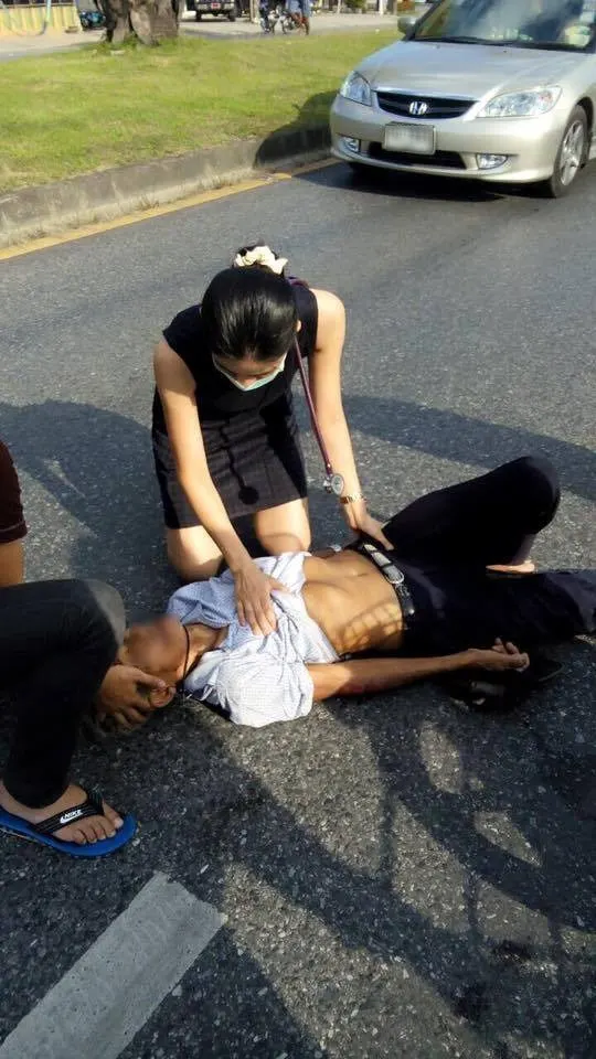 คุณหมอนอกเครื่องแบบ ผ่านมาเจอลุงเกิดอุบัติเหตุ ลงมาช่วยแบบไม่รีรอ !! #