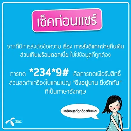 ใครใช้ดีแทคกด *234*9# วันสุดท้ายแล้ว จะได้รับเงินคืนหรือส่วนลด