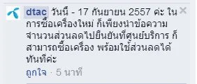 · ดีแทคขอชี้แจงว่าข้อความที่ถูกส่งต่อกันมาไม่เป็นความจริงแต่อย่างใด