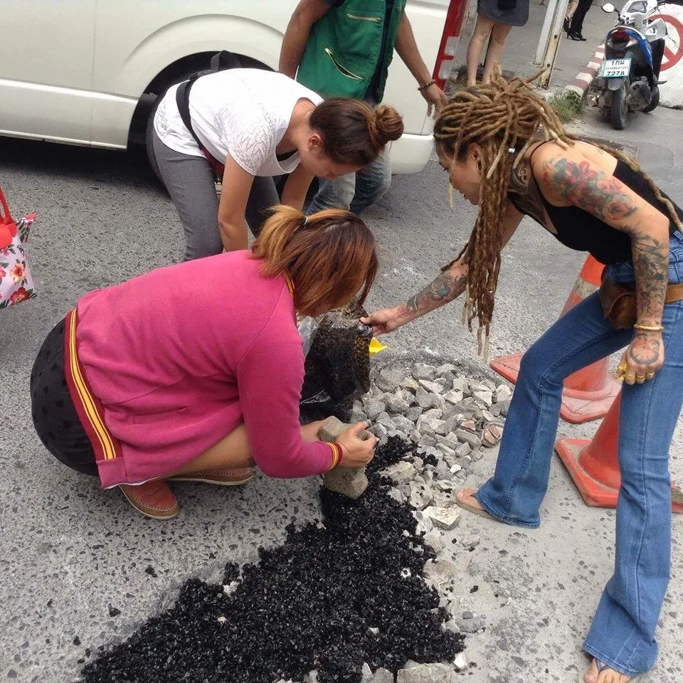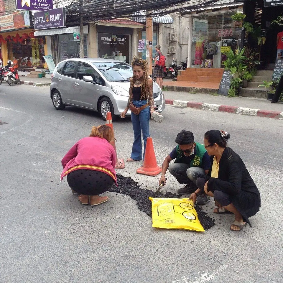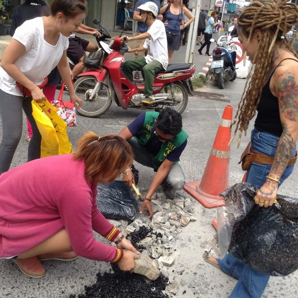 [@Happy May]_ได้โพสต์ไว้ว่า: เสียเงินซื้อยางมะต่อยแค่นี้เมย์ไม่จนหลอกคะ ไม่เป็นไรเทศบาลไม่ทำเราทำเองก็ได้ ไม่อยากทนเห็นนักท่องเที่ยวรถล้ม ขอบคุณทุกคนที่มาช่วยกันได้บุญดีคะ