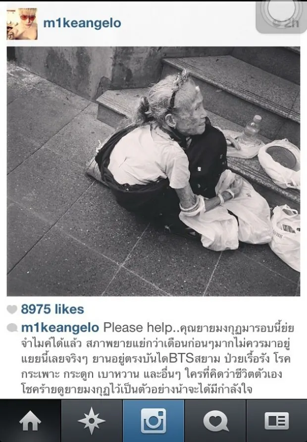 ใครยังจำ "คุณยายมงกุฎ" คนนี้ได้บ้าง คนที่นักร้องหนุ่ม "ไมค์ พิรัชต์" เคยช่วยไว้…ซึ่งตอนนั้นคุณยายคนดังกล่าวได้นั่งอยู่ตรงบริเวณบันไดทางขึ้นรถไฟฟ้า บีทีเอส สยาม ซึ่งคุณยายมีอาการป่วย และถูกลูกหลานทิ้งไป ปัจจุบันคุณยายได้รับการดูแลเอาใจใส่จาก บ้านพักคนชราบางแค มีความเป็นอยู่ที่ดีขึ้นมาก ภายใต้งบประมาณของกระทรวงพัฒนาสังคมและความมั่นคงของมนุษย์ และอาการป่วยจากแผลที่บริเวณศีรษะและตามเนื้อตัวก็หายไปหมดแล้ว แต่เรื่องสุขภาพอาจจะยังไม่แข็งแรงปกติเหมือนคนทั่วไปเท่าไหร่