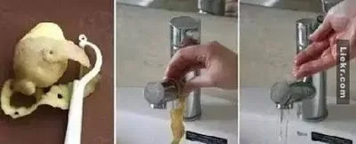 ให้ใช้เปลือกมันฝรั่งโดยใช้ด้านที่ผิวหนังติดกับเนื้อมาเช็ดกับก๊อกน้ำ แค่นี้ก๊อกน้ำของคุณก็สามารถกลับมีความเงางามและสะอาดได้