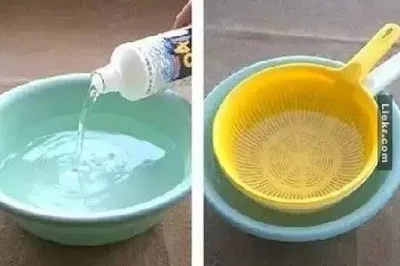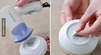 นำยาฆ่าเชื้อและน้ำสะอาดมาผสมกันในอัตราส่วน 1: 200 แล้วนำภาชนะพลาสติกที่สกปรกนั้นมาแช่ไว้ประมาณ 2 ชั่วโมง แล้วล้างด้วยน้ำสะอาด และน้ำผสมที่ถูกใช้แล้วนั้นยังสามารถนำไปเทในโถส้วมเพื่อช่วยทำความสะอาดโถส้วมได้อีก5. สติ๊กเกอร์บนของใช้ต่างๆที่ไม่สามารถเอาออกได้หมด