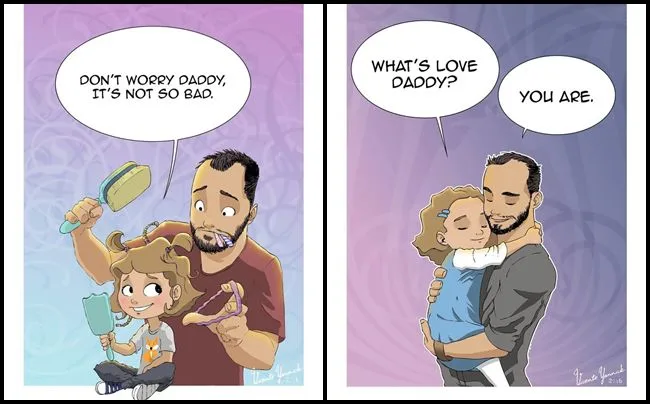 ความรักของความเป็นพ่อคนนั้น ถือได้ว่าเป็นสิ่งที่ยิ่งใหญ่ และมีน้อยคนนักที่จะสามารถเข้ามาทดแทนได้ หรืออาจจะไม่มีเลย และนี่คือผลงานของศิลปินชาวฝรั่งเศสนามว่า Yannick Vicente ซึ่งเขาต้องตัดสินใจแยกทางกับภรรยาไป แต่ยังดีที่เขายังมีลูกสาวตัวน้อยวัย 4 ขวบ อยู่ในการดูแลของเขาอยู่เสมอ เขาจึงได้สร้างผลงานศิลปะน่ารักๆ ที่สามารถสื่อความหมายของการเป็น Single Dad ได้อย่างน่าทึ่ง โดยกลั่นออกมาจากความคิดของเขาโดยตรง ผลงานของเขาจะลึกซึ้งแค่ไหน ลองไปดูกัน