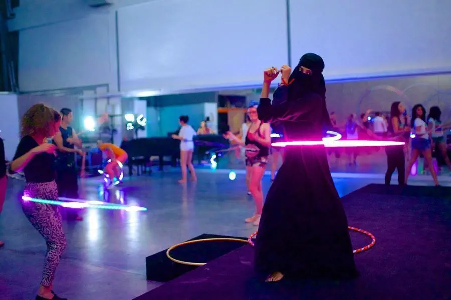 9. ผู้หญิงชาวดูไบกำลังเล่นฮูลาฮูป