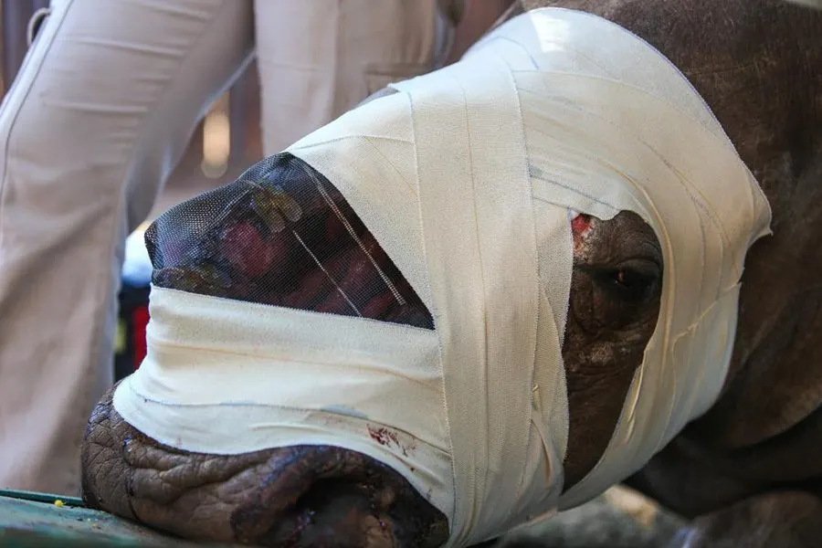 16. ภาพการฟื้นฟูใบหน้าของแรดหลังจากถูกตัดนอ