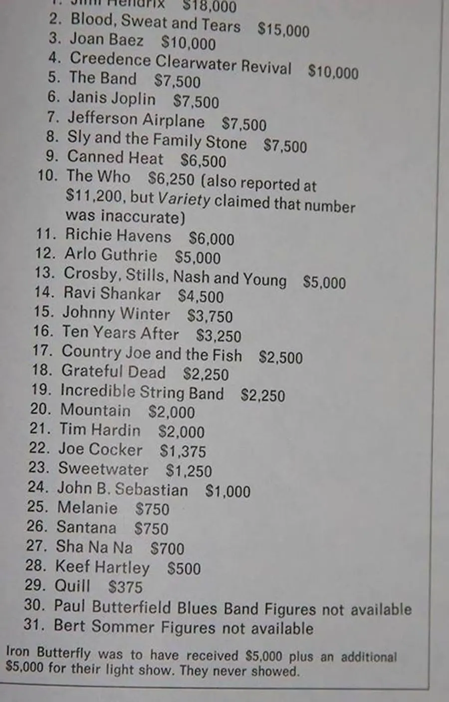18. รายชื่อศิลปินพร้อมกับค่าตัวในปี 1969