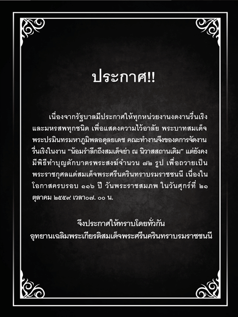 เชิญร่วมงาน "น้อมรำลึกถึงสมเด็จย่า ณ นิวาสสถานเดิม" ครั้งที่ 18/2559