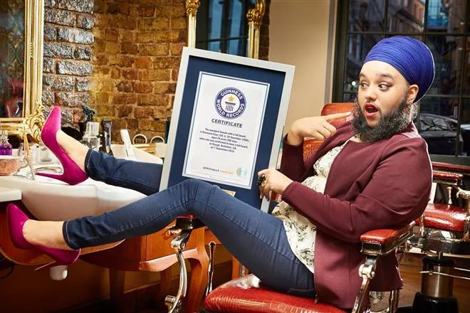 นี่คือสาวน้อยวัย 23 ปี จากประเทศอังกฤษ นามว่า เฮอร์นาม เกอร์ เธอคือบุคคลที่ได้รับการบันทึกสถิติโลกจากกินเนสส์ เวิลด์ เรคคอร์ดส ว่าเป็น ผู้หญิงอายุน้อยที่สุดในโลกที่มีนวดเคราสมบูรณ์ที่สุด เพราะเธอนั้นมีหนวดเคราที่ยาวถึง 6 นิ้ว และเธอก็ยินดีที่ได้เป็นเจ้าของสถิติโลกนี้ และหนวดเคราของเธอยังเป็นส่วนหนึ่งในความพยายามในการเอาชนะความรู้สึกเชิงลบจากคนรอบข้างอีกด้วย