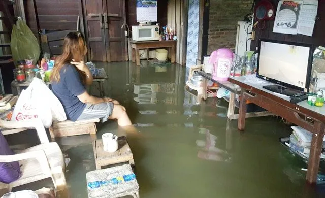 น้ำหนุนทะลักท่วมบ้านชาวชุมชนสันติชนสงเคราะห์
