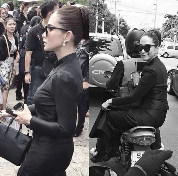 นางเอกสาวในชุดไทยจิตรลดา นั่งวินมอเตอร์ไซค์ เดินทางไปร่วมร้องเพลงสรรเสริญพระบารมี