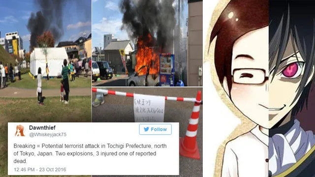 จากเหตุการณ์ ระเบิดขึ้นหลายครั้ง บริเวณลานจอดรถ ใกล้สวนสาธารณะโจชิ เมืองอุสึโนะมิยะ จังหวัดโทชิงิ ประเทศญี่ปุ่น เมื่อวันที่ 23 ตุลาคม 2559