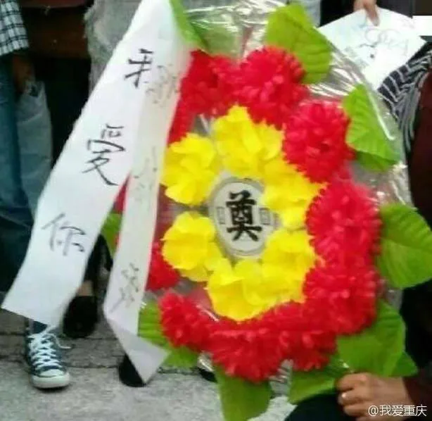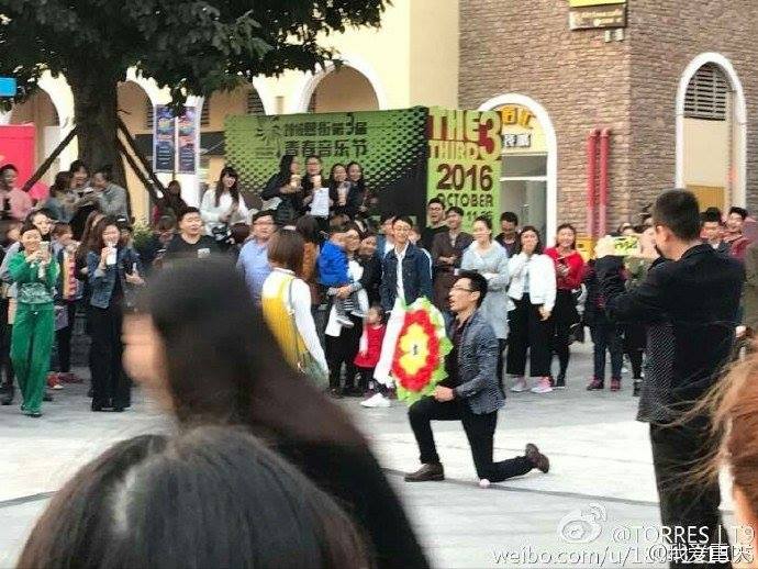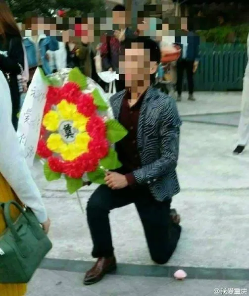 เมื่อช่วงบ่ายของวันที่ 3 พ.ย. เฉิงซีเจีย หนุ่มจีนจากมหาวิทยาลัยฉงชิ่งใช้ “พวงหรีด” ขอแฟนสาวแต่งงานท่ามกลางฝูงคน ซึ่งแฟนสาวพอโดนเซอร์ไพรส์แบบนี้ก็อึ้งไปชั่วขณะ แล้วเดินหนีไปด้วยความโกรธ อย่างไรก็ตามถือว่าหนุ่มจีนคนนี้กล้ามากที่ใช้พวงหรีดขอสาวแต่งงาน เพราะมันเป็นสัญลักษณ์ของการไว้อาลัย!