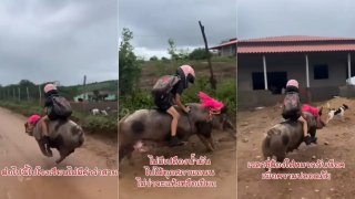 หนุ่มน้อยไปโรงเรียนไม่มีคำว่าสาย..เจอหมูซิ่งเข้าไป บอกเลยอย่างฮา 😁