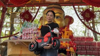 เฮงเกินต้าน! สาวใหญ่แก้บนเจ้าสัวเฮงด้วย..มอเตอร์ไซค์ไฟฟ้าหลังถูกหวย 10 งวดติด