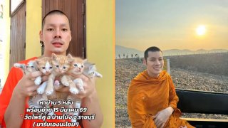 "สีส้มนี้มีบ้านหรือยัง? เปิดวาร์ป 'พระศรัณย์' หลวงพี่ใจบุญอุ้มลูกแมวหาบ้านจนโซเชียลหลุดโฟกัส"
