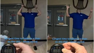 ทวงคืนบัลลังก์เจ้าแห่งสมดุล! ชายอเมริกันโชว์เหนือ ใช้คางวางเก้าอี้นานกว่า 1 ชม.