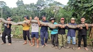 ชาวบ้านตื่นเต้น หลังพบงูหลามยักษ์หนักกว่า 100 กิโลกรัม