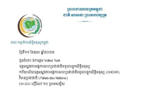 ผู้อำนวยการคณะกรรมการสิทธิมนุษยชนกัมพูชาส่งคําร้องเร่งด่วนไปยังนายโวลเกอร์ เติร์ก ข้าหลวงใหญ่สิทธิมนุษยชนแห่งสหประชาชาติ จากกรณีที่ประเทศไทยเปิดลำโพงเสียงดังในรูปแบบข่มขู่และคุกคามจิตใจชาวเขมร