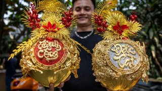 ช่างฝีมือแปลงโฉมมะพร้าวธรรมดา ให้กลายเป็นมะพร้าวชุบทอง