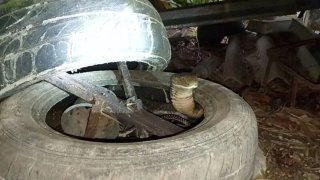 ระทึกพญางูบุกบ้าน ชูคอขู่สนั่นซุกยางล้อรถ ชาวบ้านเเห่ขอเลขเด็ด