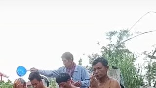 ทหารกัมพูชา อาบนํ้ามนต์ ก่อนไปรบ