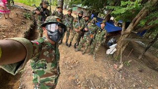 หารเขมรแนวหน้าบางคนใส่หน้ากาก บางคนไม่ใส่ ถ่ายเซลฟี่กันที่ฐาน แต่ลงแคปชั่น "ปลอดภัยไว้ก่อน พวกเสียมไว้ใจไม่ได้