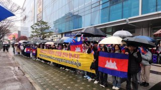 ชาวกัมพูชาที่อาศัยและทำงานอยู่ในประเทศเกาหลีใต้ ได้รวมตัวกันเพื่อจัดการชุมนุม-ประท้วงไทย ในกรณีสงคราม ไทย - กัมพูชา