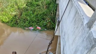 กู้ระทึก!กระบะซิ่งเหินฟ้าชนราวสะพานกระเด็นตกคลองจมดิ่ง กู้ภัยเร่งกู้ ส่วนคนขับยังไม่ทราบชะตากรรม