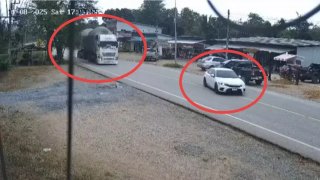 กล้องชัด!เก๋งเลี้ยวข้ามเลนกลางถนนตัดหน้าบรรทุกพ่วง 22 ล้อพุ่งชนยับ เจ็บ 3