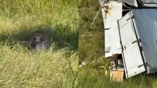 ตำรวจเตือนอย่าเข้าใกล้ ลิงทดลอง 6 ตัวที่มีเชื้อไวรัสในตัว 3 ชนิด หลบหนีหลังรถบรรทุกพลิกคว่ำ