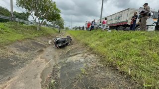 ช่วยระทึก!กระบะรั้วเสียหลักลงข้างทาง คนขับเจ็บ