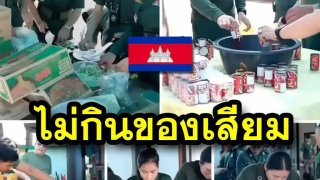 โซเชียลฮือ! “ตำรวจเขมร” แอบกินของไทย ทั้งมาม่า-ปลากระป๋อง หลังเคยประกาศกร้าว “ไม่กินของเสียม”