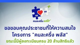 อ้าว! หมดแล้ว ขอขอบคุณประชาชนที่ให้ความสนใจ โครงการ "คนละครึ่ง พลัส" ขณะนี้มีผู้ลงทะเบียนครบ 20 ล้านสิทธิแล้ว🫢