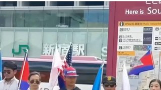 แรงงานกัมพูชาในญี่ปุ่นรวมตัวยืนประท้วงหน้าสถานี JR ฟ้องไทยเปิดเสียงผีชายแดนหลายคืนติดต่อกัน